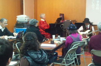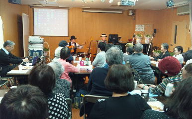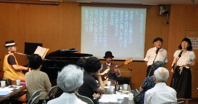 なつかしい歌を皆さんでうたいましょう。 |