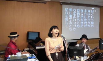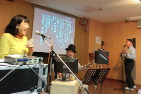 けっこう難しい歌でしたけど、天笑楽さんの伴奏で歌うことができました。 |