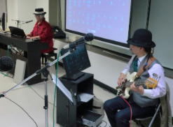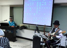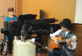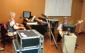 ピアノ・アコーディオン・ギター・ベースと歌に合わせた音色の伴奏が自慢です!! |